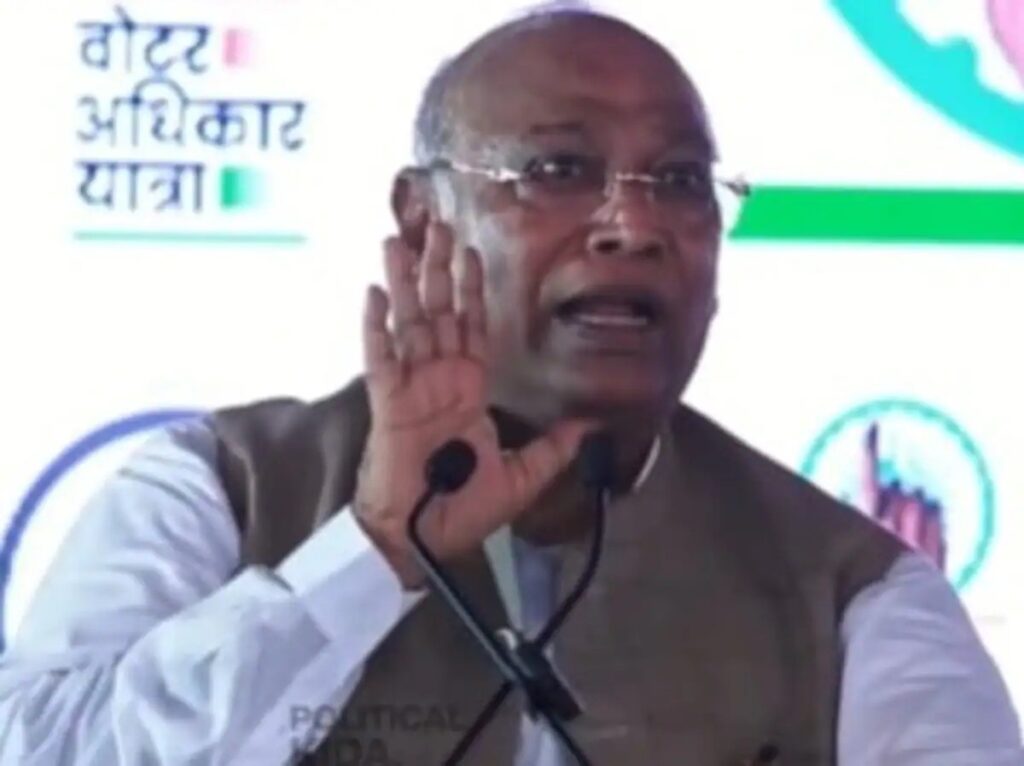 अपने भाषण में कांग्रेस अध्यक्ष मल्लिकार्जुन खड़गे ने कहा कि हम लोग सिर्फ चुनाव के लिए नहीं, बल्कि लोकतंत्र के लिए लड़ रहे हैं। संविधान बचाने के लिए लड़ रहे हैं। वोट की सुरक्षा के लिए लड़ रहे हैं। ये वोट काट-काटकर अपनी हुकूमत चलाना चाहते हैं। ऐसी सरकार को उखाड़ फेंकना है। इसलिए सभी मजबूती के साथ गठबंधन के लोगों के साथ रहिए। ये सरकार जरूर बदलेगी। इनका कोई अस्तित्व नहीं रहेगा। आपके सहयोग से बिहार में भी सरकार बदलेगी।